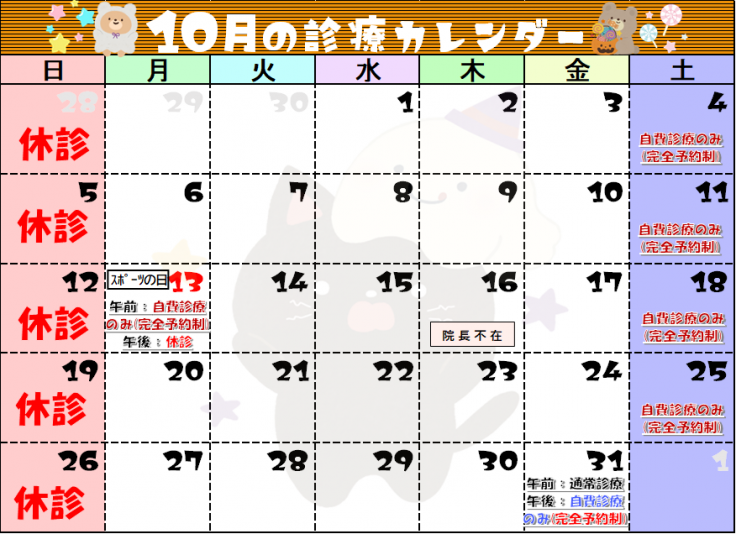 →午前:自費診療のみ(完全予約制)/午後:休診