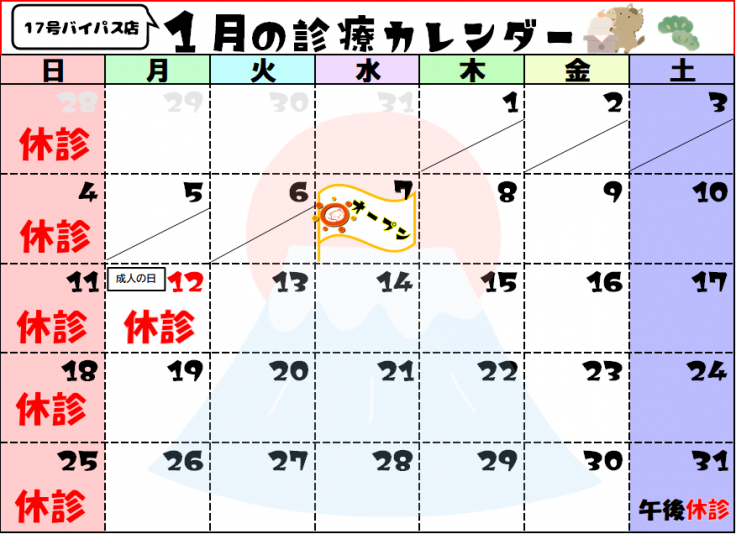 ☆本院は水曜日、木曜午後、土曜午後は休診となりますが【17号バイパス店】で診療はいたいします。