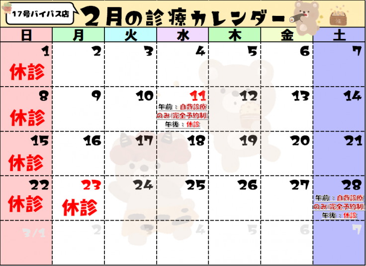 ☆マークが付いているところは17号バイパス店の方で診療いたします。